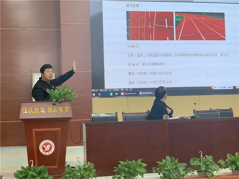 會(huì)議就本次運(yùn)動(dòng)會(huì)前期準(zhǔn)備工作及運(yùn)動(dòng)會(huì)當(dāng)天的工作進(jìn)行了統(tǒng)一安排。吳校長(zhǎng)對(duì)方陣訓(xùn)練、物資整理、廣播稿收集、運(yùn)動(dòng)會(huì)當(dāng)天觀眾人員安排、宣傳工作等工作進(jìn)行了統(tǒng)一的部署。校長(zhǎng)助理兼學(xué)生處主任龍永洪為全體裁判員進(jìn)行了培訓(xùn),將各個(gè)組織在運(yùn)動(dòng)會(huì)上的工作得以具體化,明確的分工是為了更好的完成運(yùn)動(dòng)會(huì)的各項(xiàng)工作,做到有條不紊。